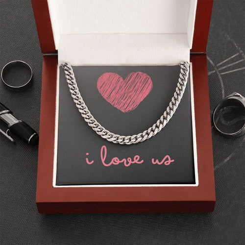 Valentines Day Gift for Him | Cuban Link Chain with Gift Message "i love us" | Polished stainless steel or 14k yellow gold over stainless steel